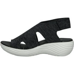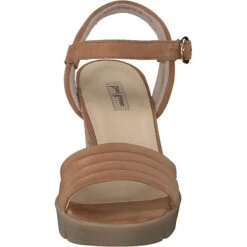 Diese stilvoll gestalteten Keilsandaletten der Marke Alma en Pena vervollständigen jedes Outfit. Der Keilabsatz verbindet einen femininen Look mit angenehmem Komfort. Das Obermaterial des Paares setzt sich zusammen aus einem Materialmix aus Leder und Textil. Durch den Riemenverschluss kann die Weite der Schuhe individuell angepasst werden. Das Fußbett besteht aus natürlich atmungsaktivem Leder, das ein komfortables Tragegefühl unterstützt.