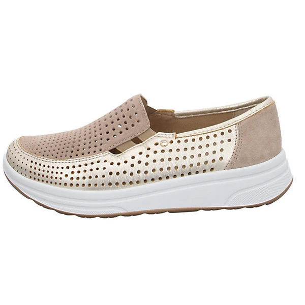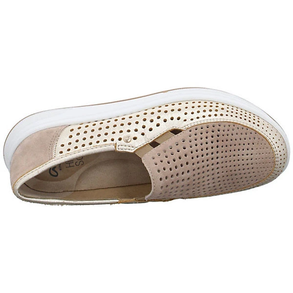 Diese Sneaker von ara punkten mit ihrem gepolstertem Fußbett und der flexiblen Laufsohle. In einer schönen Beige-Gold Kombination machen sie neben ihrem Fokus auf Tragekomfort und Fußgefühl auch noch eine gute Figur. Für ein schnelleres An- und Ausziehen sind zwei kleine seitliche Stretcheinsätze integriert worden.