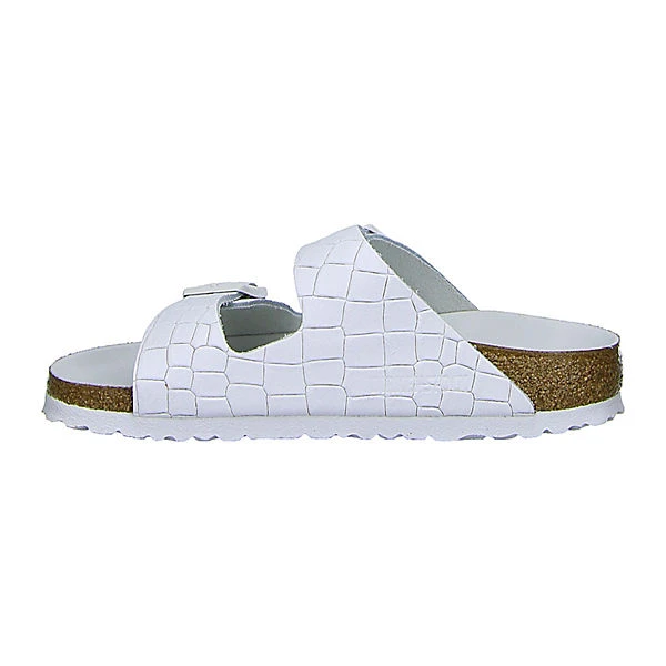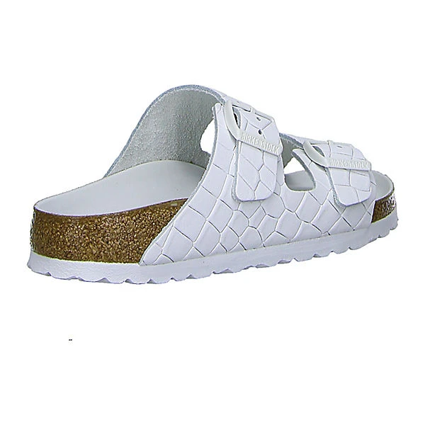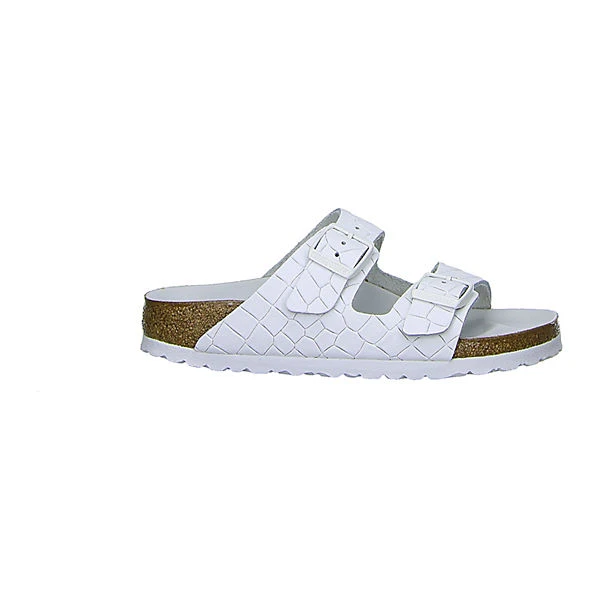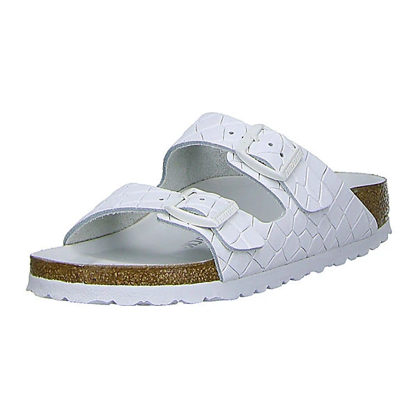 Die weiße Birkenstock Pantolette Modell Arizona aus geprägtem Naturleder überzeugt durch erstklassigen Tragekomfort- dafür sorgt in erster Linie das für Birkenstock typische Kork-Latex-Fußbett mit seinen anatomischen Ausformungen. Für die Pantolette aus unbehandeltem Naturleder werden besonders schöne Lederstücke mit einer Stärke von 2,8 bis 3,2 Millimetern ausgewählt. Arizona unterstützt und entlastet den Fuß haltgebend, Gelenke und Rücken werden geschont. Gleichzeitig trainiert es die Beinmuskulatur, was Ihre Gesundheit unterstützt und Ihr Wohlbefinden steigert.