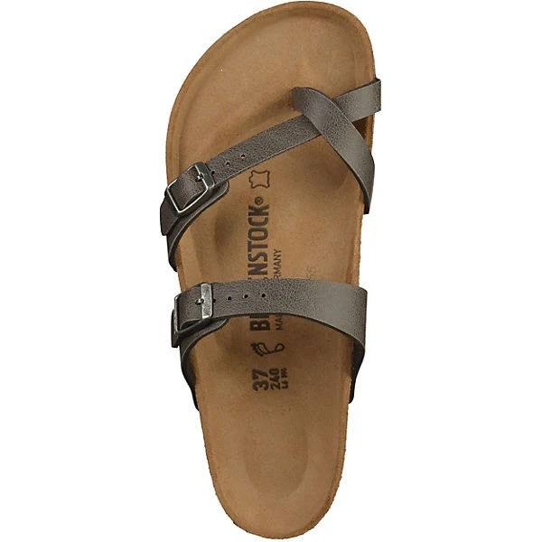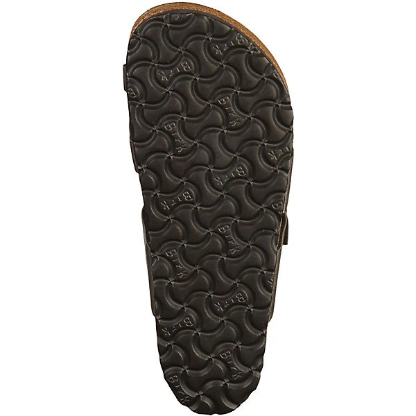 Pantolette von Birkenstock mit zwei verstellbaren Riemen und anatomisch geformtem Fußbett.