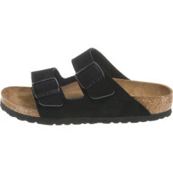 Birkenstock Arizona Weichbettung Veloursleder Pantoletten Schmal – Schwarz
