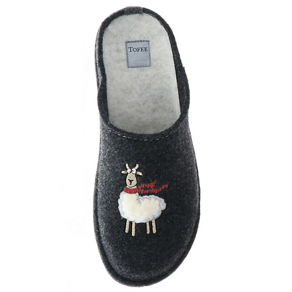 Diese gemütlichen Hausschuhe von TOFEE überzeugen durch die weiche Innenverarbeitung und durch die Decksohle und Laufsohle aus Filz. Das Obermaterial aus ökologischem Naturwollfilz ist umweltfreundlich und angenehm weich. Der Hingucker bei diesem Hausschuh ist das gestickte Schaf mit Schal auf dem Blatt.
