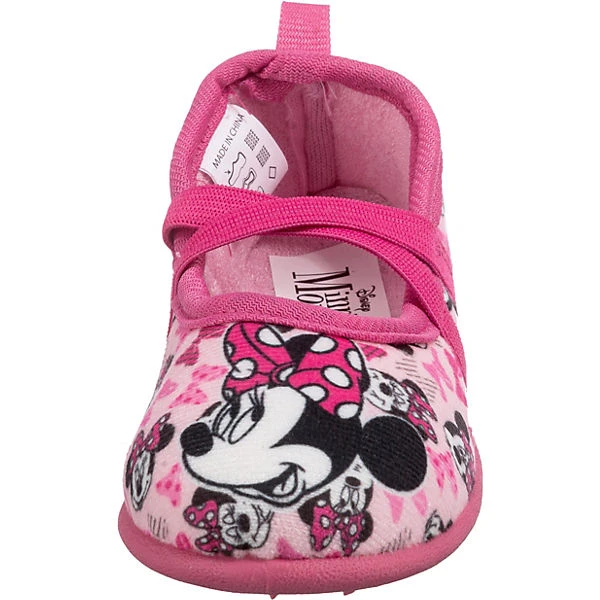 Diese Hausschuhe beeindrucken mit auffälligem Disney Minnie Mouse-Design. Das Schuhpaar kommt ohne Verschluss aus, sodass ganz einfach hineingeschlüpft werden kann. Die Aufmachung des Modells wird durch das textile Obermaterial unterstützt.