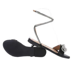 Riemchensandalen Schnalle, Blockabsatz, Riemen, Strass – Schwarz