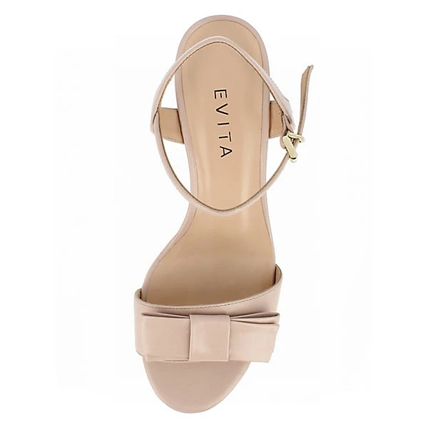 Mit dieser sommerlichen EVITA Sandalette mit Schleife zeigen Sie viel Fuß: Vorne sorgt der breite weiche Lederriemen und hinten der weitenverstellbare Fesselriemen für bequemen Halt. Und wer schön sein will, muss bei EVITA nicht leiden. Dieser Schuh ist vorne offen und weit genug, dass er bequem sitzt, optisch aber trotzdem schmal wirkt.