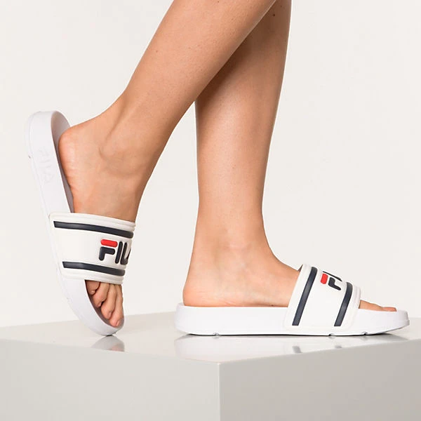 Einfacher Slide für drinnen und draußen, das bekannte FILA-Logo ist oben zwischen den grafischen Linien eingefasst