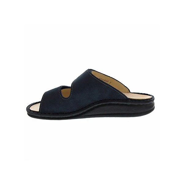 Herren Pantoletten von Finn Comfort aus einem feinen hochwertigem Nubukleder. Innen ist der Schuh mit einem cromfrei gegerbtem Leder ausgestattet. Der Schuh verfügt über eine etwas breitere Weite. Der Absatz ist durchgehend flach. Die Laufsohle ist aus Krepp. Der Klettverschluss zum einfachen und bequemen an- und ausziehen sorgt für einen guten Halt.Ebenfalls ist eine stufenlose Anpassung an den Fuß möglich. Die Schuhgröße fällt regulär aus.