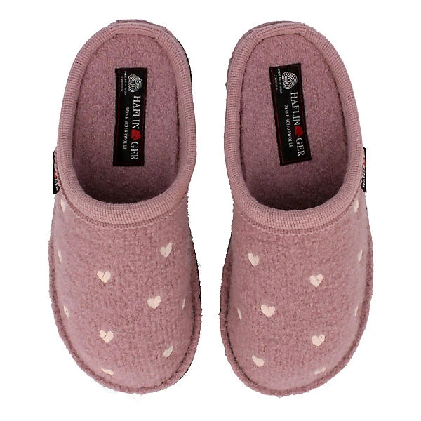 Das Modell Flair Valentine beschützt Ihre Füße an kalten Tagen und passt sich durch den Wollwalkstoff individuell den Füßen an. Auf den Pantoffeln befinden sich aufgestickte Herzen. Das Obermaterial und die Decksohle sind aus reiner Schurwolle gefertigt und sorgen für ein perfektes Fußklima, sind atmungsaktiv und Temperatur-ausgleichend. Ihre Füße bleiben warm, fangen jedoch nicht an zu schwitzen. Die 10 mm dicke und latexbeschichtete Filzsohle ist rutschfest sowie feuchtigkeitsabweisend.