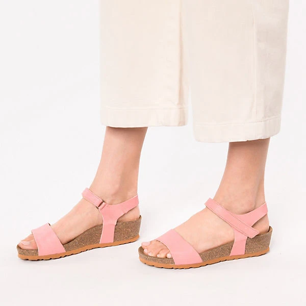 Die Keilsandaletten von Greenova sorgen stets für einen trendigen Style. Der Keilabsatz in komfortabler Höhe bietet ein angenehmes Tragegefühl und einen ansprechenden Look. Das Obermaterial zeichnet sich durch das feine, echte Leder aus. Durch den Klettverschluss lässt sich dieser Schuh individuell an den Fuß anpassen.