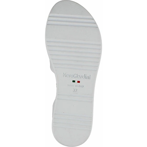 Für frischen Wind im Kleiderschrank sorgt diese Plateausandalette von Nero Giardini aus hochwertigem Glattleder. Ein toller Blickfang sind die gefochtenen Bast-Elemente an der Zwischensohle und die robuste Laufsohle. Das Fesselriemchen lässt sich individuell um den Knöchel schnüren.