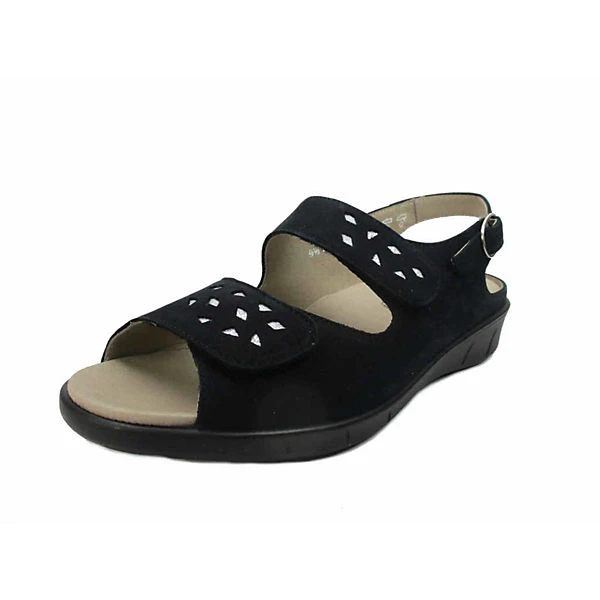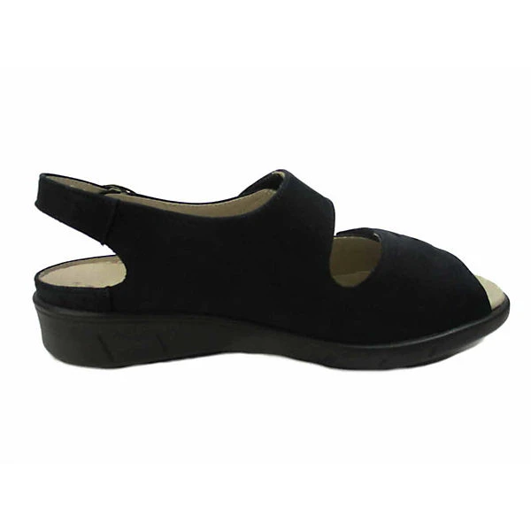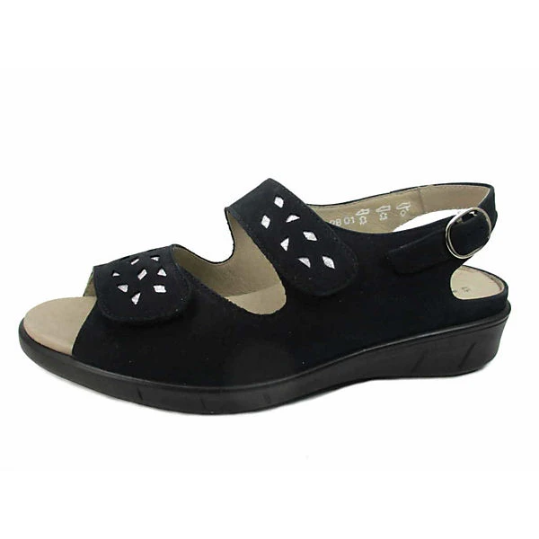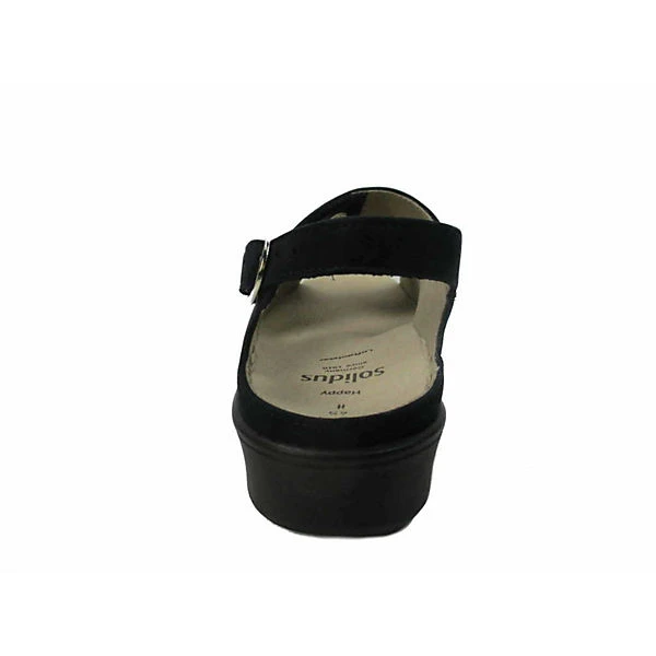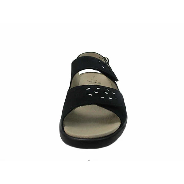 Schöne Sandalen von Solidus aus einem feinen hochwertigem Veloursleder. Innen ist der Schuh mit einem cromfrei gegerbtem Leder ausgestattet. Der Schuh verfügt über eine etwas breitere Weite. Der Absatz ist durchgehend flach. Die weiche PU-Sohle schont die Gelenke und federt jeden Ihrer Tritte optimal ab. Über die paraktische Schließe kann der Schuh dem Fuß optimal angepasst werden. Die Schuhgröße fällt regulär aus.
