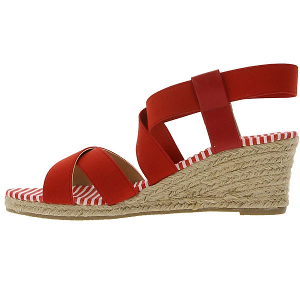 erstklassige Damen Sandaletten mit Keilabsatz lässt sich zu vielen verschiedenen Looks tragen individuell anzupassende Gummibänder leicht gepolsterte Sohle Innenmaterial: Textil Außensohle: Synthetik Gewicht je Schuh: circa 210g bei Größe EUR 38