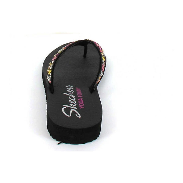 – leichte Zehentrenner-Pantolette für Damen von Skechers für heiße Sommertage – das mit bunten Glitzersteinchen dekorierte Obermaterial sorgt für einen effektvollen Auftritt – hoher Tragekomfort durch die weiche “ Yoga Foam “ Sohle – rutschhemmende Laufsohle