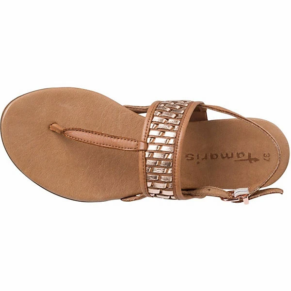 Der Zehentrenner von Tamaris ist aus hochwertigen Leder-Obermaterial. Mit der Schließe zur Weitenregulierung kann sich das Material individuell an den Fuß anpassen.