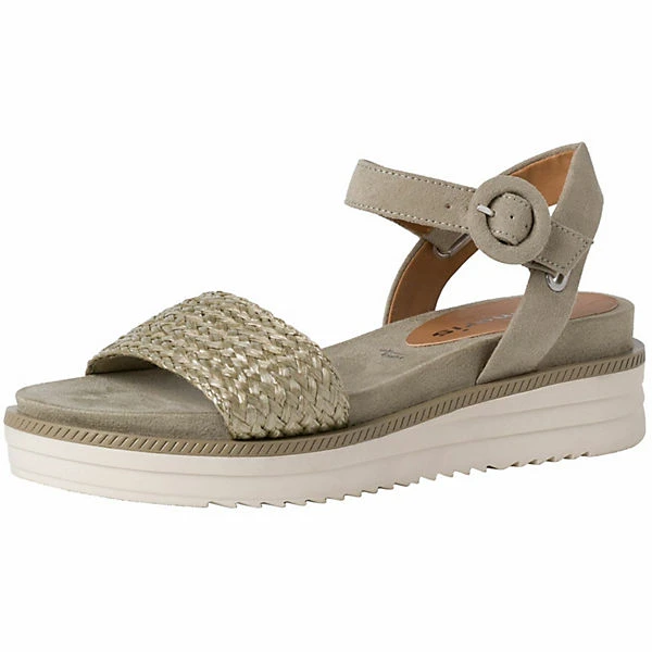 Diese Damen-Sandalette von Tamaris ist aus Textil. Die TOUCH-IT-Decksohle sorgt für ein weiches Fußbett passt sich der natürlichen Fußform an.
