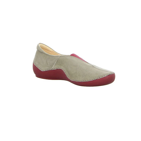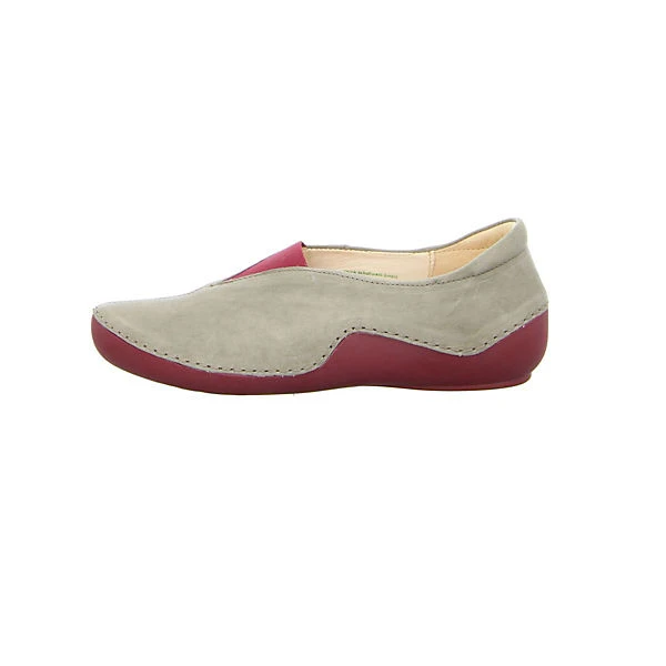 Damen Slipper von Think aus angenehm weichem und hochertigem Leder. Innen ist der Schuh mit einem cromfrei gegerbtem Leder ausgestattet. Der Schuh hat eine normale Weite. Der Absatz ist durchgehend flach. Die Laufsohle ist aus Gummi. Die Schuhgröße fällt regulär aus.