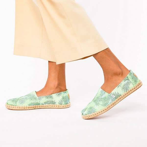 Die Espadrilles der Marke TOMS sorgen stets für einen trendigen Look. Ein Pluspunkt ist zudem das anschmiegsame Baumwolle-Futter. Die Baumwoll-Oberfläche ist sehr robust und anschmiegsam. Dieses Modell kommt ohne jeglichen Verschluss aus, sodass ganz einfach hineingeschlüpft werden kann.