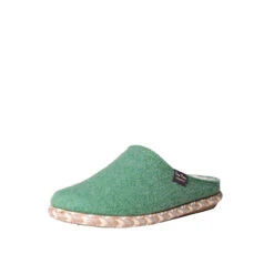 Diese gemütliche Hausschuhe für Damen bestehen aus unifarbenem Filz. Die 1 cm dicke, flache Sohle ist aus Gummi und zweifarbig geflochtener Jute gefertigt. Die Pantoffeln haben eine herausnehmbare Einlegesohle mit einem 2,5 cm hohen Keil an der Ferse. Insgesamt misst der Hausschuh hinten 3,5 cm. Dieses Modell fällt normal groß aus. Wenn Sie zwischen zwei Größen liegen, wählen Sie die kleinere Größe. Diese Hausschuhe sollten nicht in der Maschine gewaschen werden. Bitte halten Sie sich an die Pflegehinweise im Schuh.