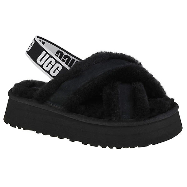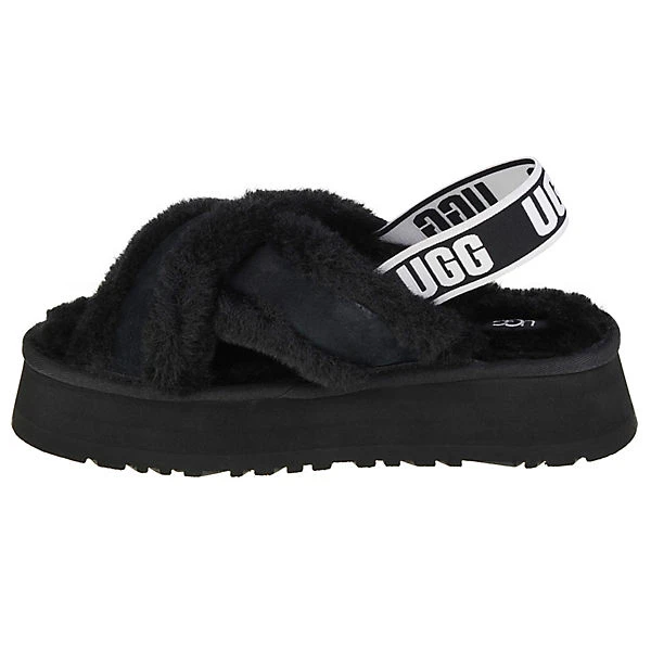 Auf Schritt und Tritt: Die Pantoletten von UGG dürfen zu keiner Gelegenheit fehlen. Das Fußbett besteht aus atmungsaktivem Echtleder, das ein angenehmes Tragegefühl begünstigt.